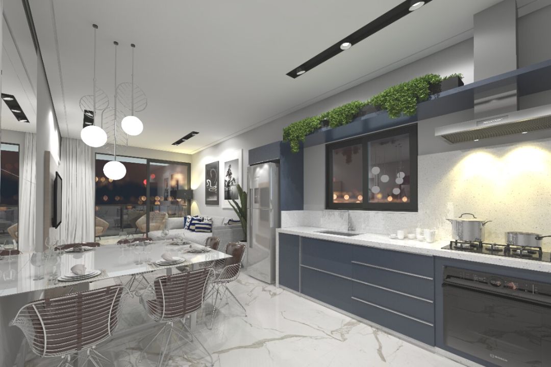 Apartamento com 92 m² de área útil, 02 suítes, sala de estar e jantar, lavabo, cozinha e 02 vagas de garagem.