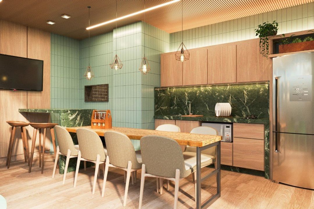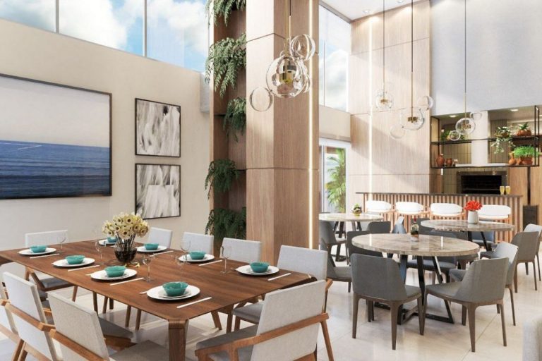 Apartamento com 130m² área privativa, possui 3 suítes sala de estar, sala de jantar, lavabo e 2 vagas de garagem.