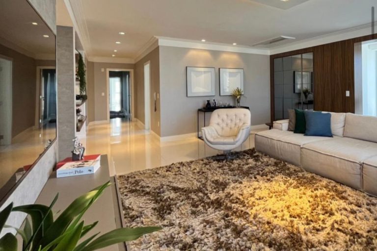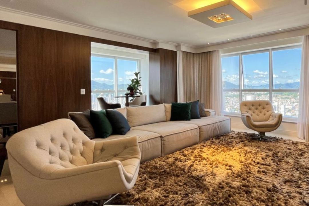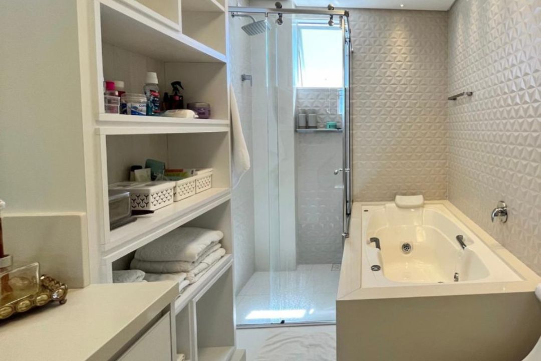 Apartamento 04 suítes, sala de estar e jantar, lavabo, cozinha, 04 vagas de garagem privativa.
