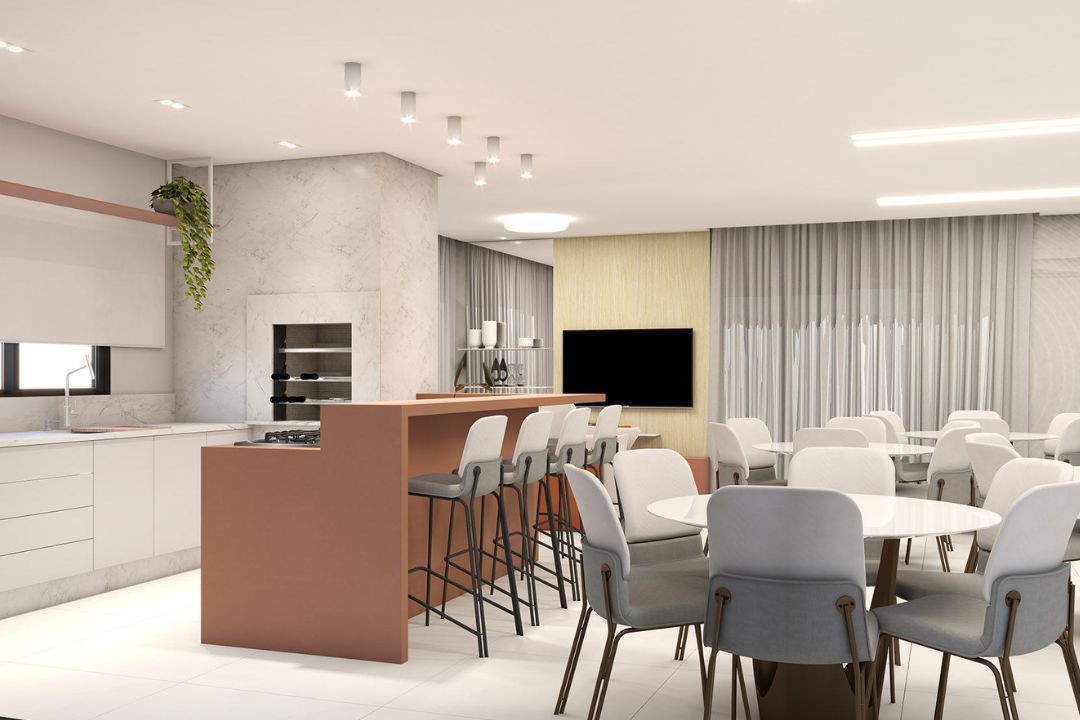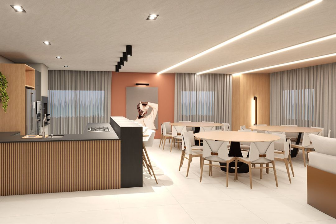 Lazer com salão de festas, sala de jogos, piscina adulto e infantil, academia, brinquedoteca, playground e espaço gourmet.