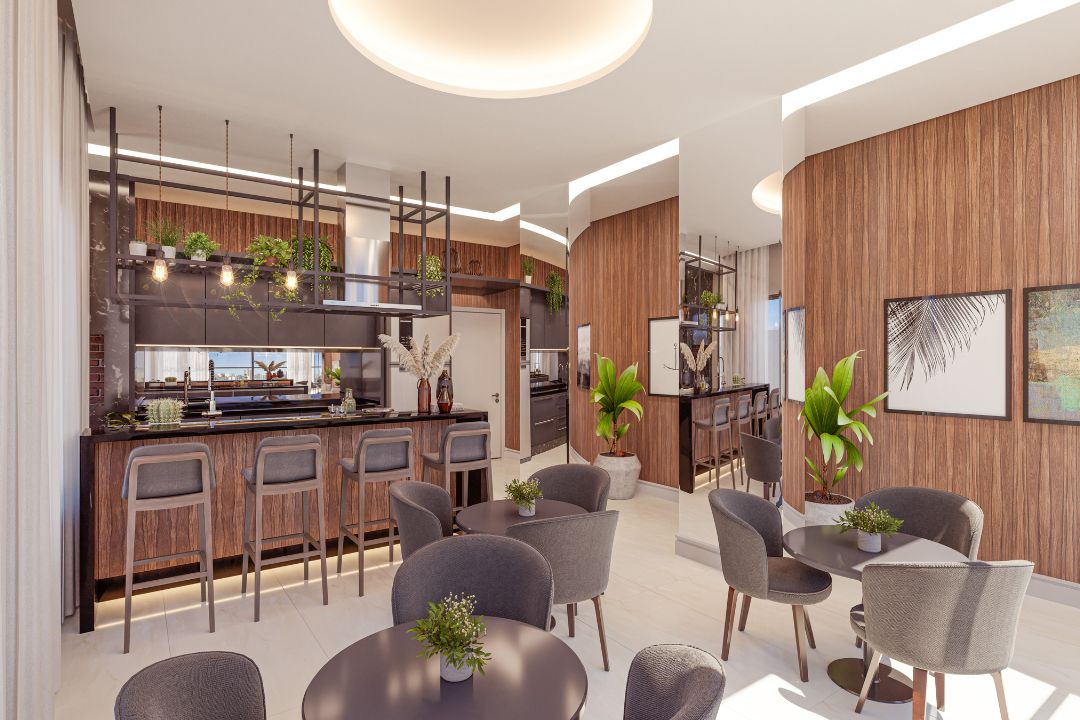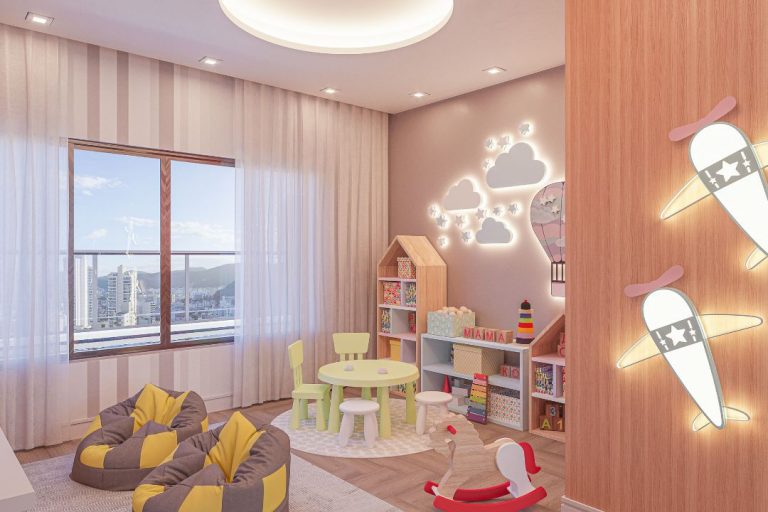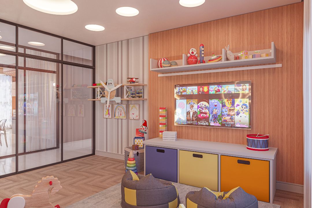 Infraestrutura com piscina adulto e infantil, salão de festa, sala de jogos, espaço gourmet, brinquedoteca e academia.