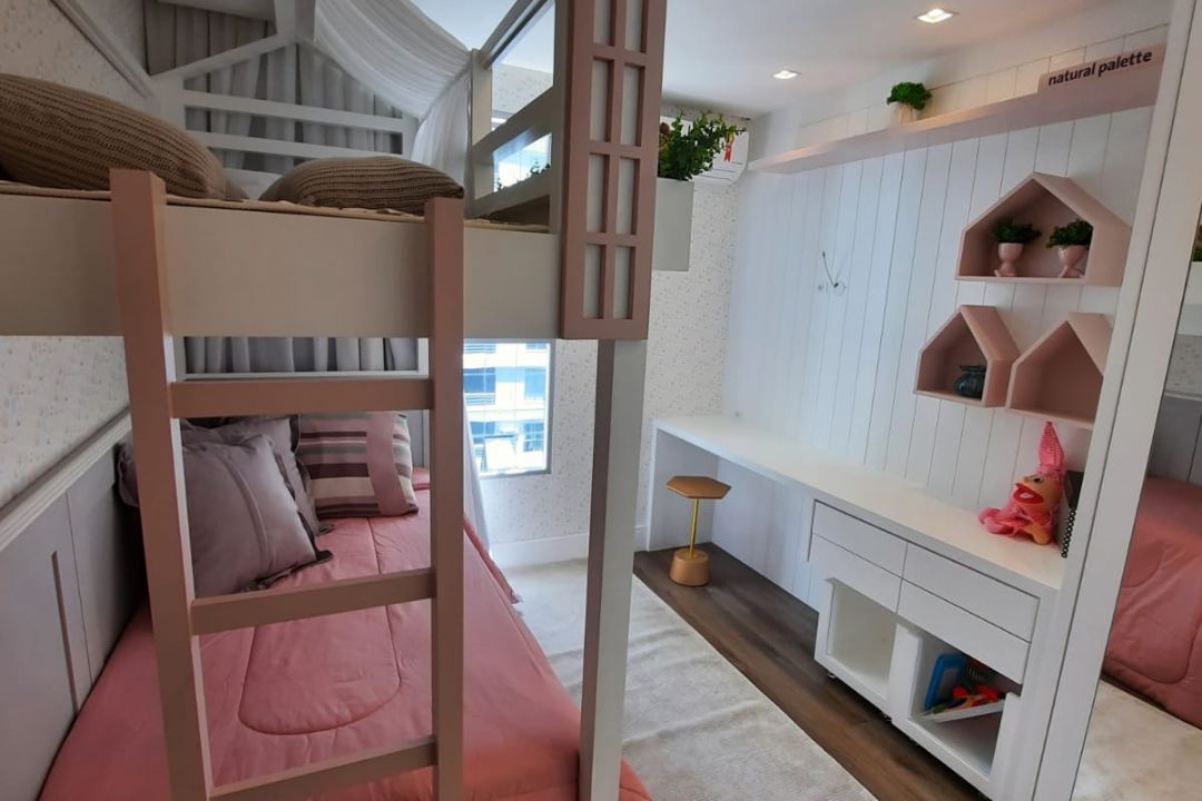 Área de lazer possui academia, piscina adulto e infantil, sala de jogos, salão de festas, espaço kids e portaria 24h.