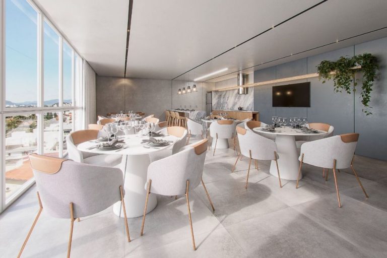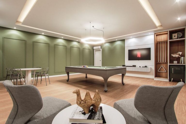 Empreendimento conta com salão de festas, sala de jogos e espaço fitness.