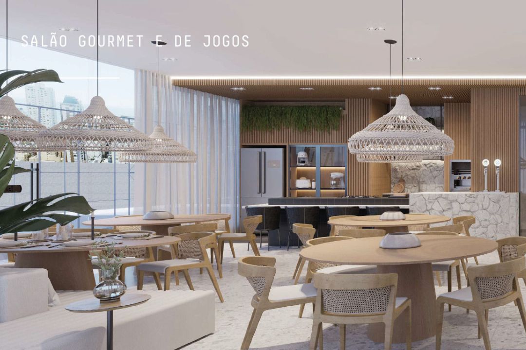 Apartamento com 84,77 m², com 02 suítes, sala de estar e jantar, lavabo, cozinha e 01 vaga de garagem privativa.