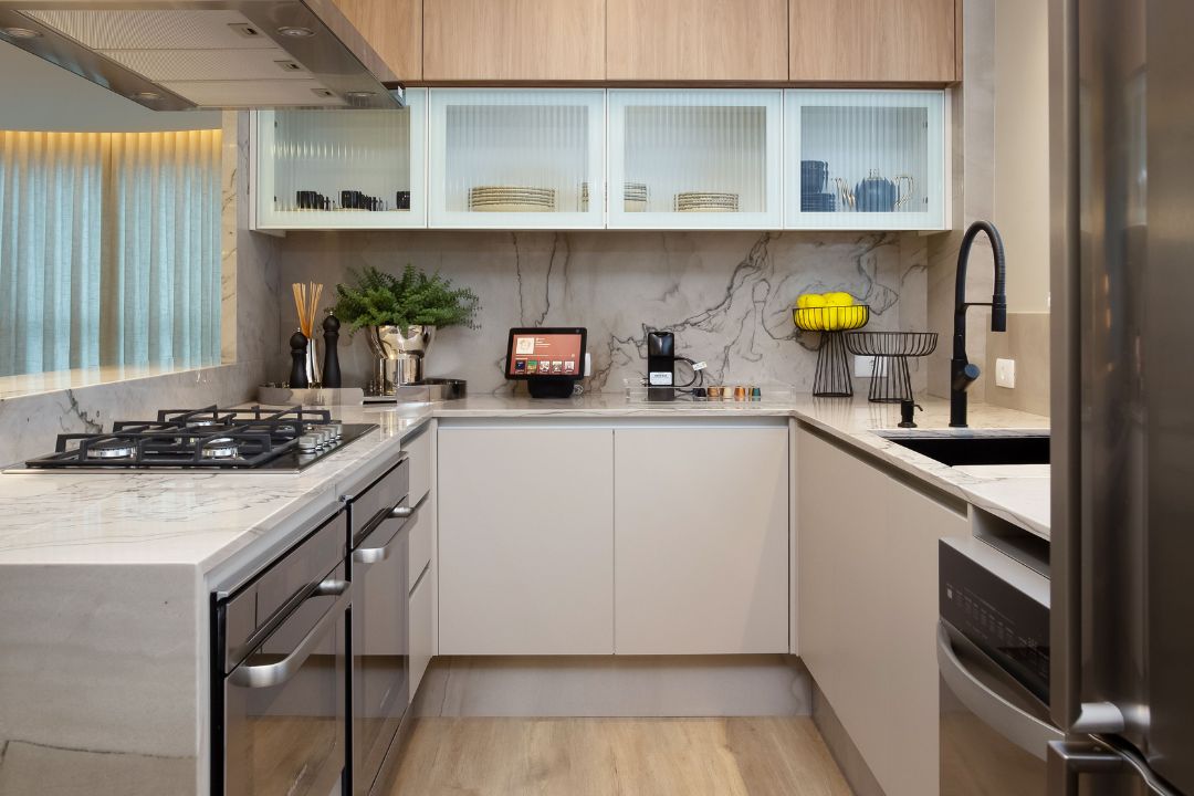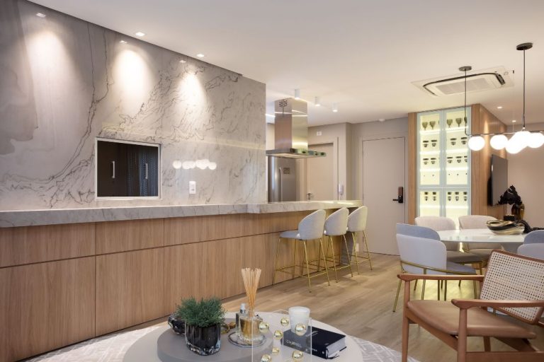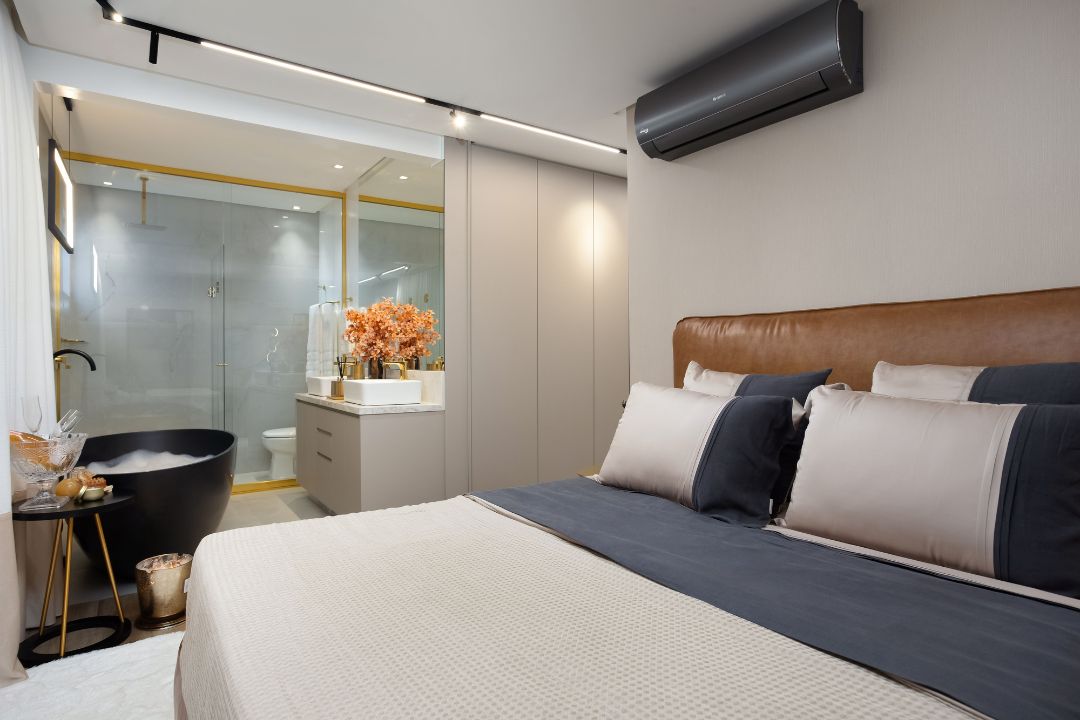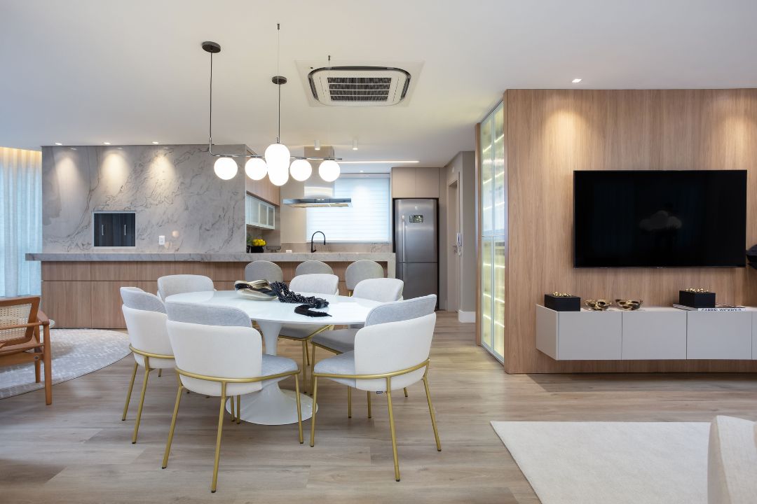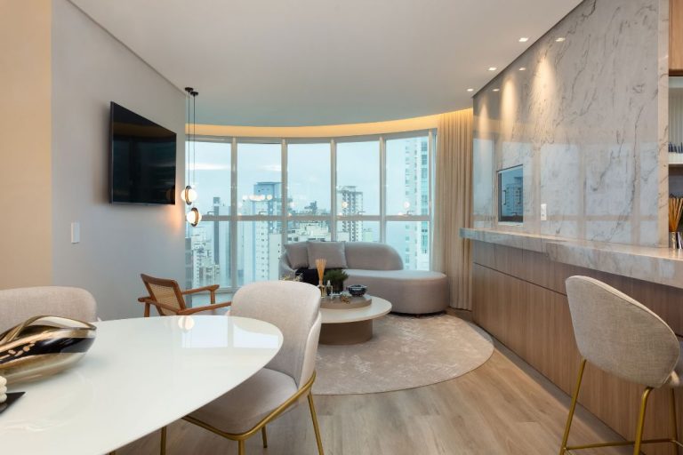 Apartamento mobiliado 137 m² de área privativa, decorado e equipado, 1 apto por andar, elevador privativo, 3 suítes, lavabo, sala de estar e jantar e 4 vagas de garagens.
