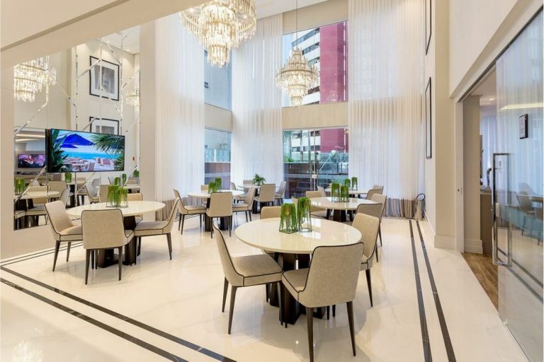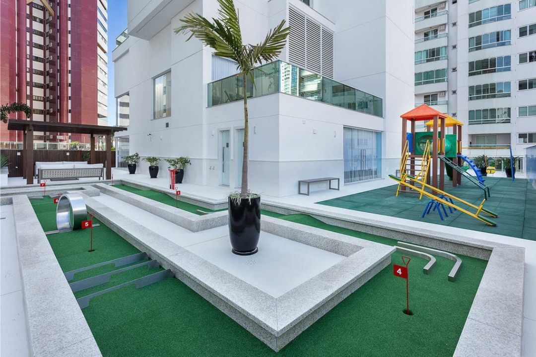 Empreendimento possui piscina, parque infantil, salão de festas, spa, sauna, espaço fitness, espaço games, cinema em casa, minigolfe.