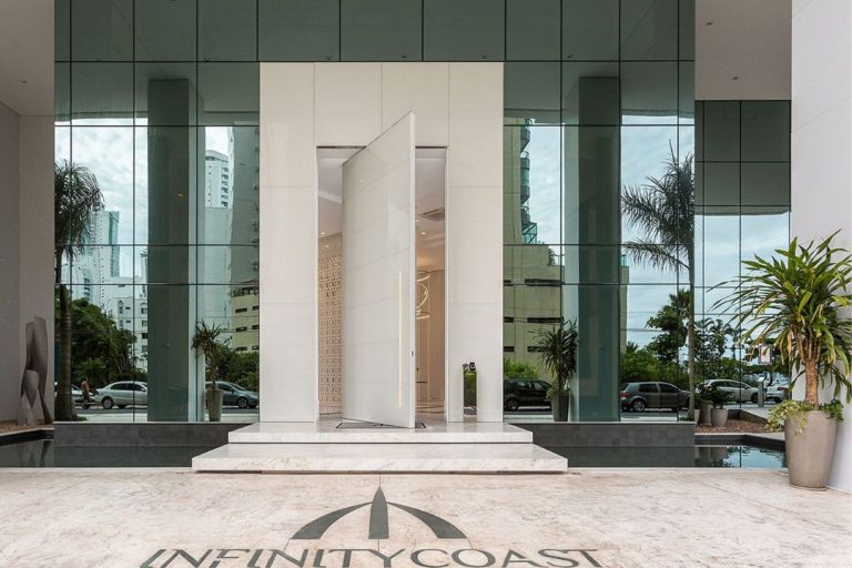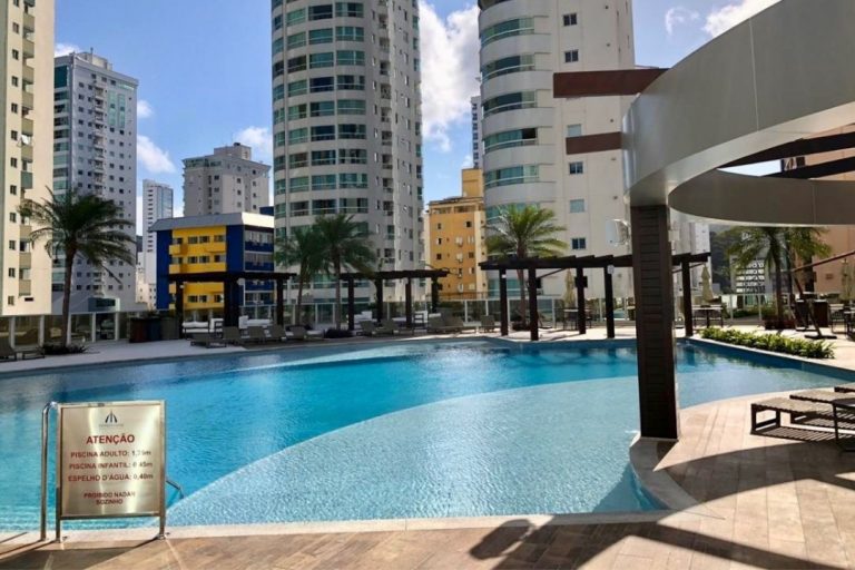 A fachada em forma de asa delta e a janela Infinity conferem o estilo new loft aos apartamentos do Infinity Coast. A infraestrutura de resort completam a magnitude do edifício.