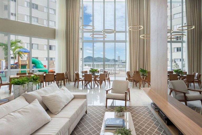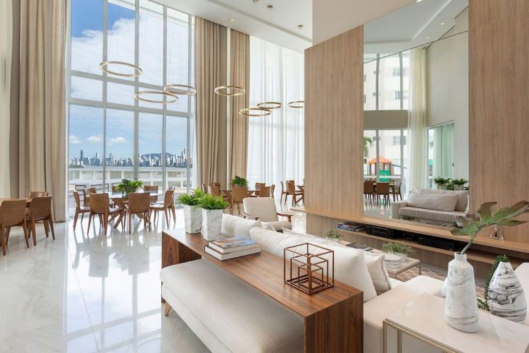 Um apartamento com ambientes amplos e integrados e uma vista incrível de toda a praia de BC.