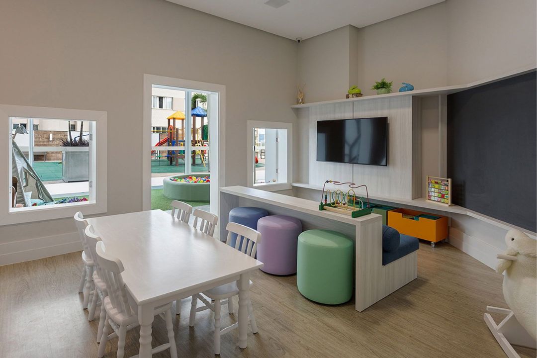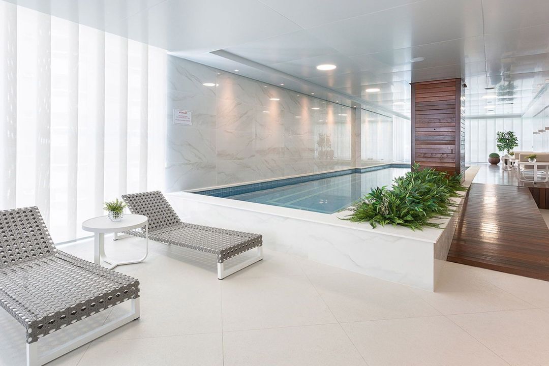 Possui área de lazer completa, com piscina, cinema, academia, espaço yoga, salão de festas, brinquedoteca, spa e muito mais.