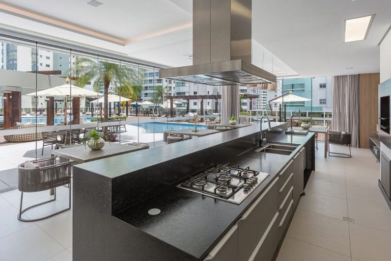 São 172m² privativos, com 3 suítes (sendo 1 master com hidro), espaço gourmet com churrasqueira, sala de estar, jantar, cozinha integrada, área de serviço, lavabo e 3 vagas de garagem privativas.