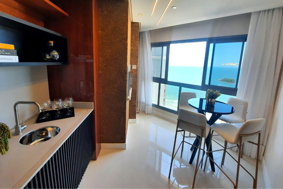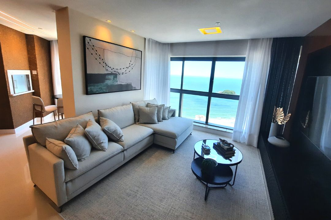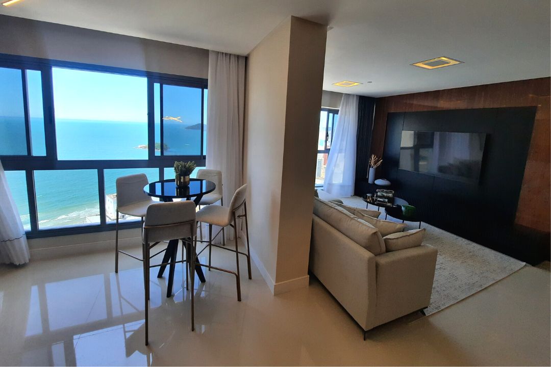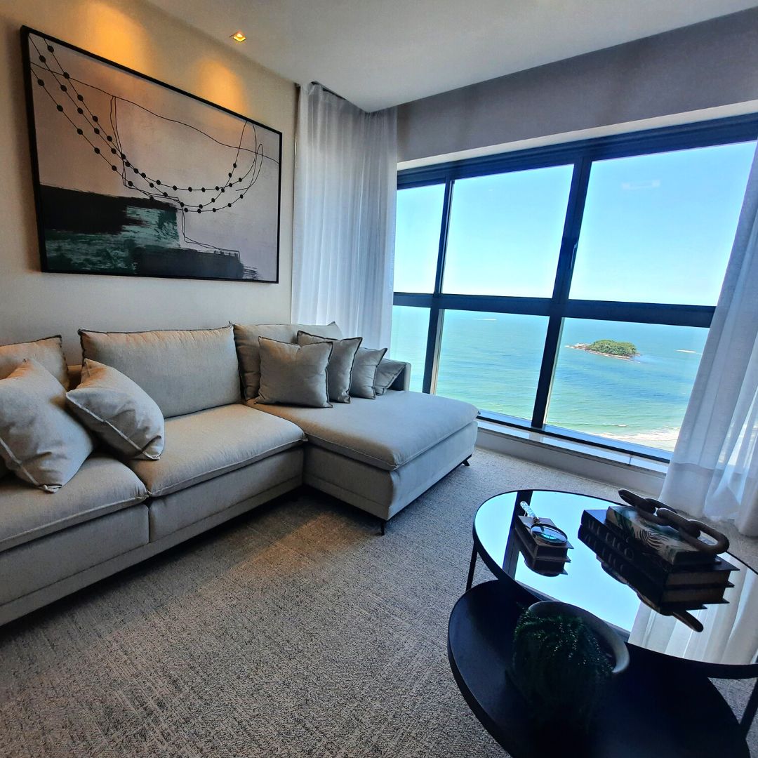 Apartamento com belíssima vista para o mar. Pronto para morar, finamente mobiliado, decorado e equipado.