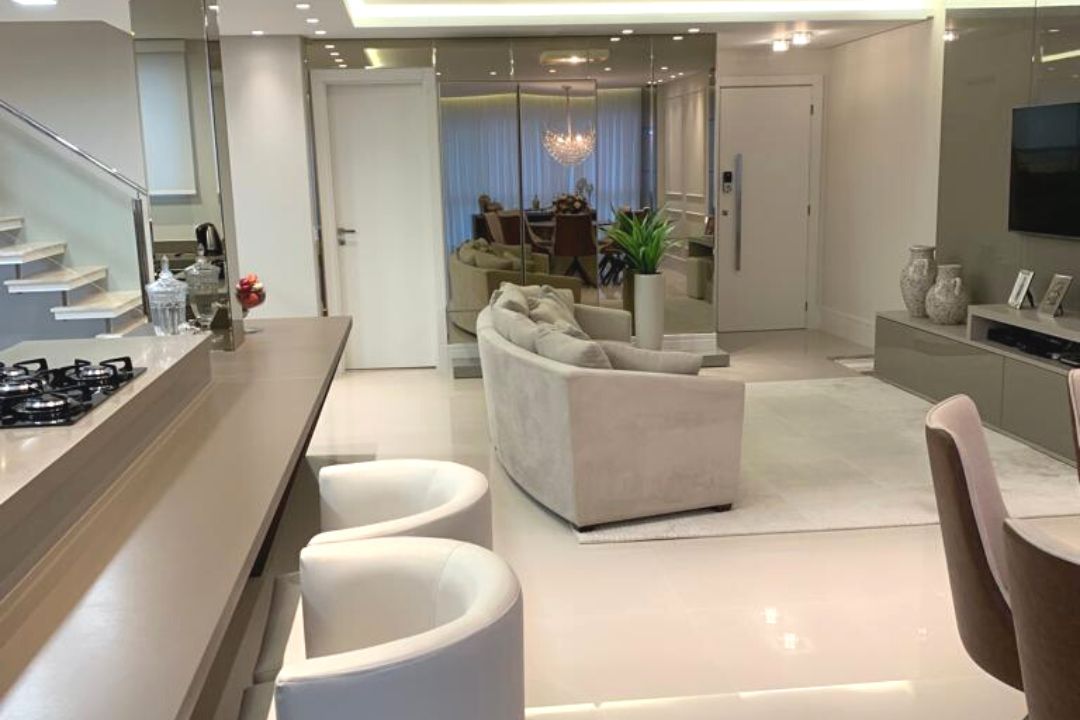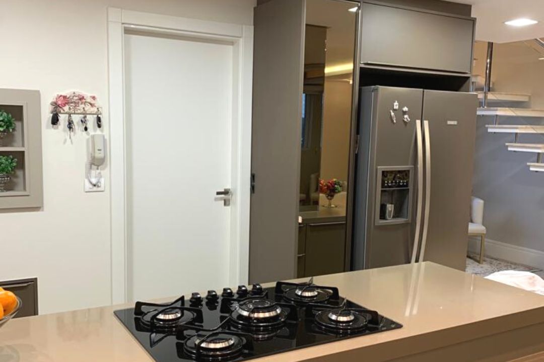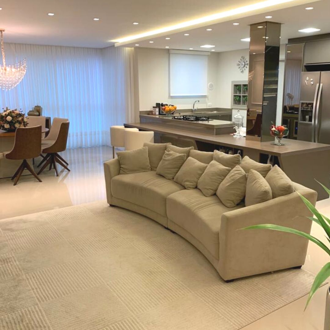 Cozinha integrada com amplo living
