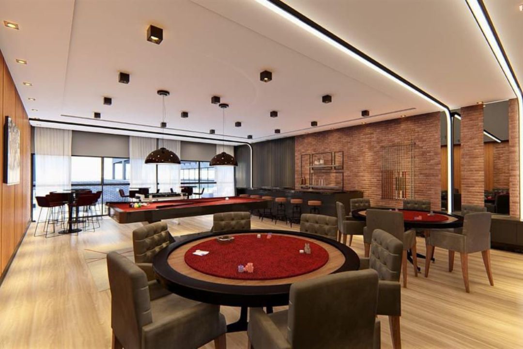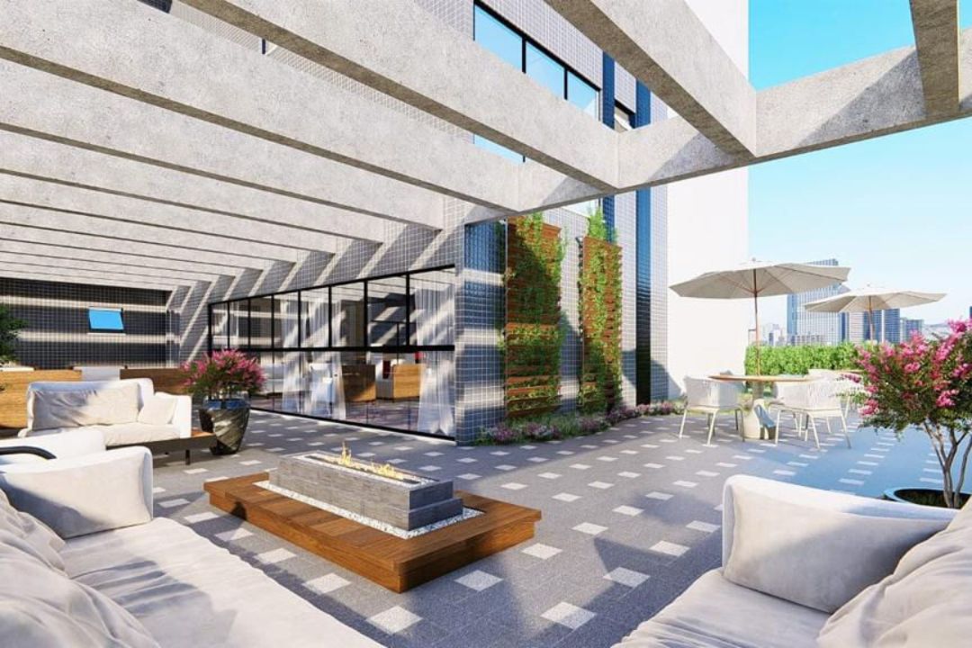 Área de lazer conta com:  piscina adulto e piscina infantil, espaço SPA, academia completa, espaço crossfit, sauna, pub, sala de jogos, salão de festas, espaço kids, playground, quadra poliesportiva, espaço pet, terraço, espaço lareira, quiosques com churrasqueira, coworking e sala de reuniões.
