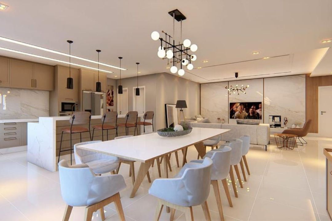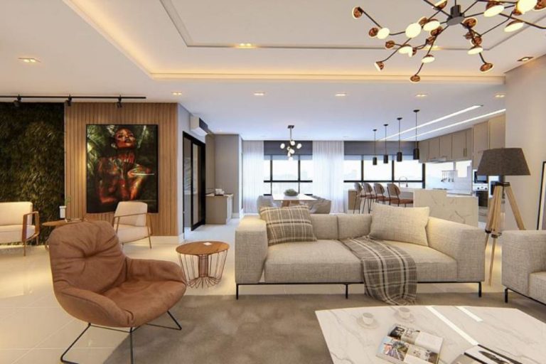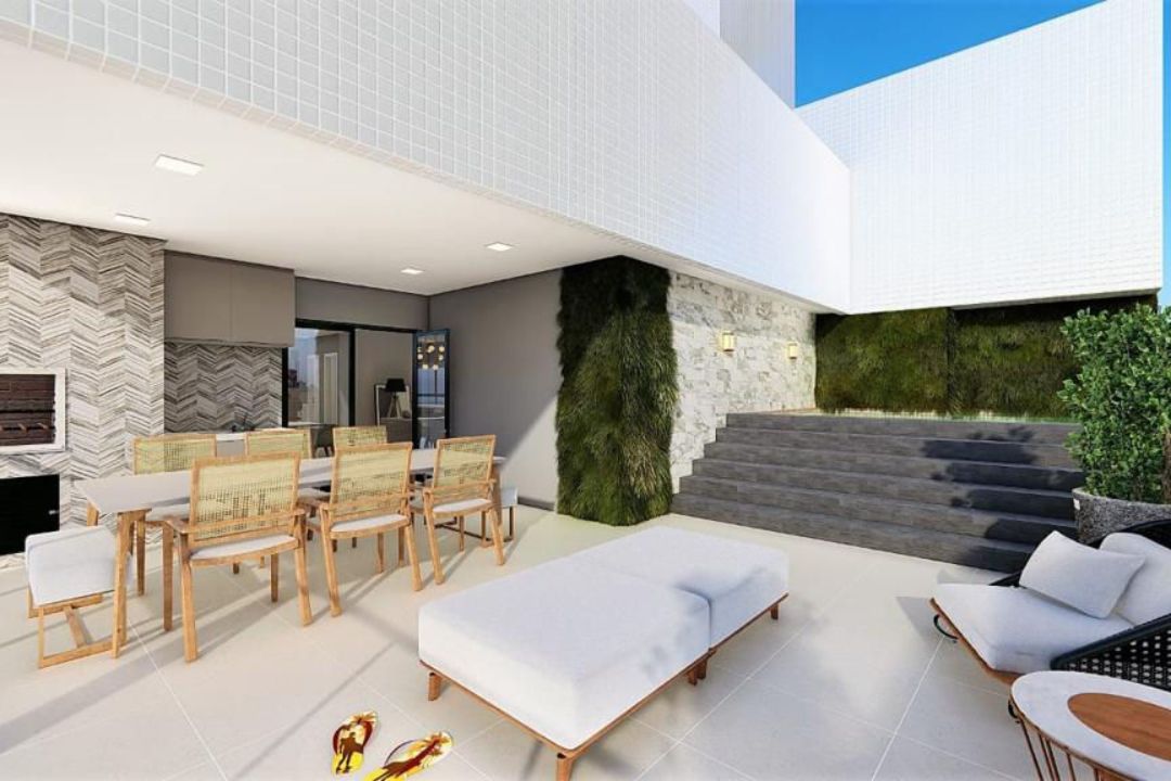 Apartamento com 175m² de área privativa, sendo 04 suítes, sala de estar e jantar, sacada com churrasqueira, lavabo e 03 vagas de garagem privativa.