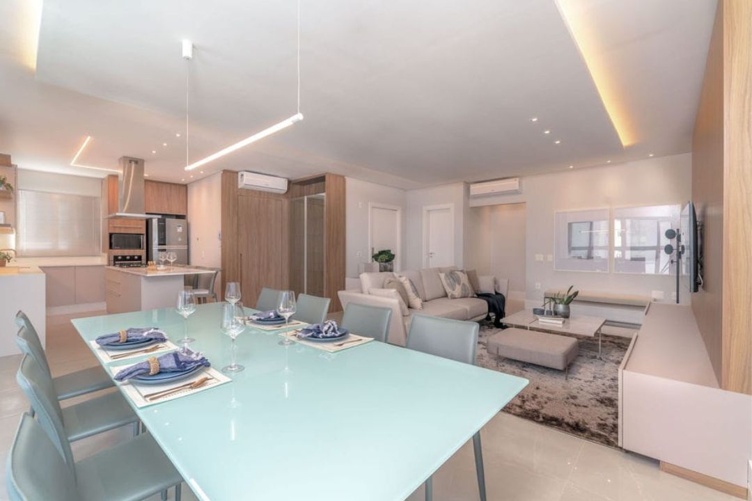 Apartamento conta com linda vista para o mar com 03 suítes, living com sala de estar e jantar e 02 vagas de garagem privativa.