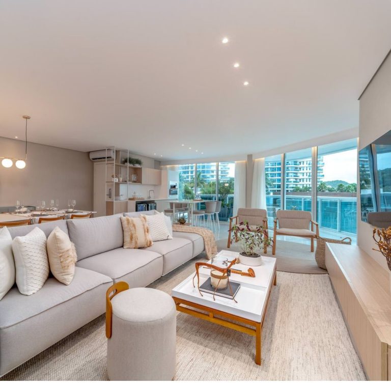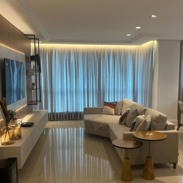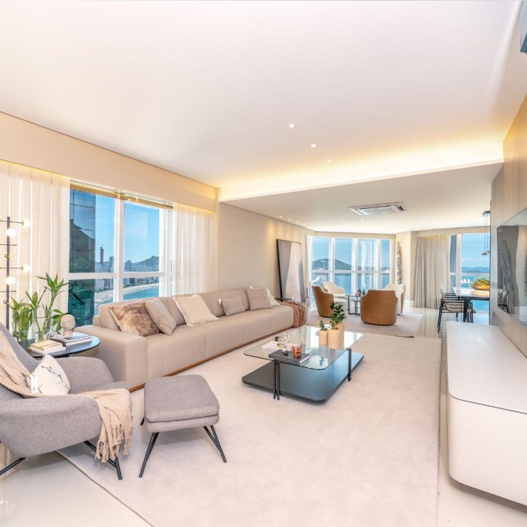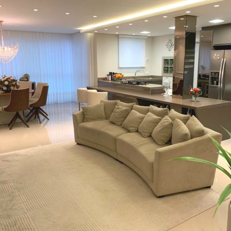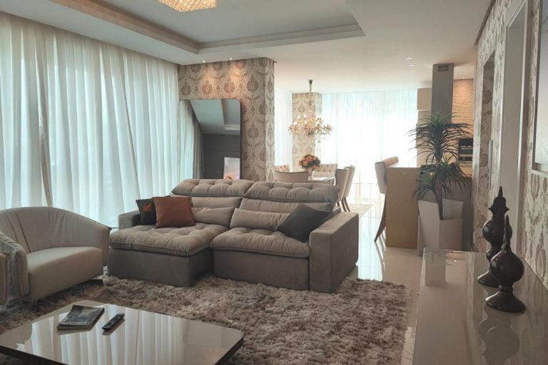 Apartamento com 192 m² de área útil, 4 suítes, living integrado com cozinha, trazendo amplitude e conforto para o ambiente, churrasqueira a carvão e 02 vagas de garagem privativa.